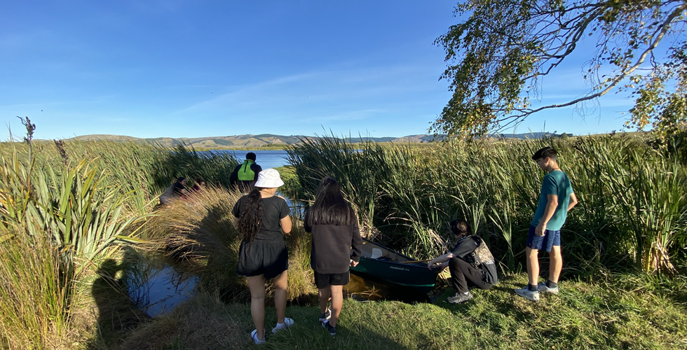 Our noho started on Tuesday April 6 at Te Whakaraupuka by setting our hīnaki. This was the first time for many to experience this mahi. At Te Whakaraupuka we use canoes to go out on one of the ponds to set hīnaki all around the pond. Following this we headed out to Ōtākou Marae for a pōwhiri and whakawhanaungatanga. We outlined the programme for the next few days and Tame and Puke started the wānanga with our rangatahi that night looking at what knowledge our rangtahi already knew about traditional Māori knowledge of the taiao.