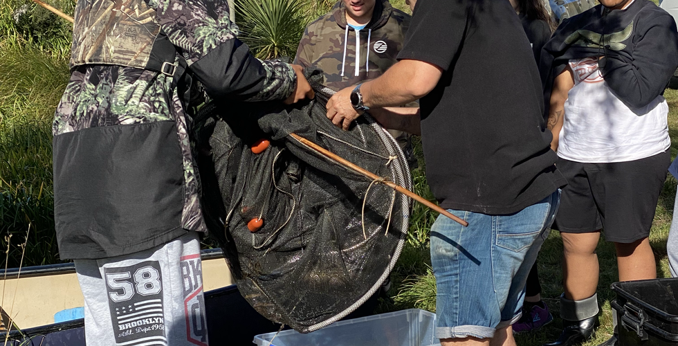 The following day, we had an early breakfast and headed out to Te Whakaraupuka to retrieve our hīnaki and look at the catch. This is the end of the tuna season as the last of the migrating eels have left our shores and those left behind prepare for winter and a time of low energy. As expected the catch wasn't huge but the range of sizes and species still gave us a lot of coverage.
